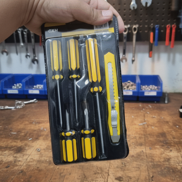 This high-quality tool kit includes 5 screwdrivers and 1 cutter, making it a must-have for every household and DIY enthusiast. The set features 2 straight screwdrivers and 3 cross screwdrivers, designed for precision and durability in daily repairs. The included cutter is sharp and reliable, perfect for cutting tasks around the home, office, or workshop. Crafted with strong materials, this compact tool set is easy to carry and ensures long-lasting performance for a wide range of tasks.