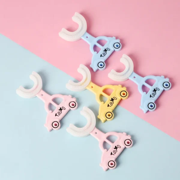 Silicon Toothbrush taxi design Portable Hand-Held Shaped Infant Soft Bristle 360 Degrees for kids (random color)