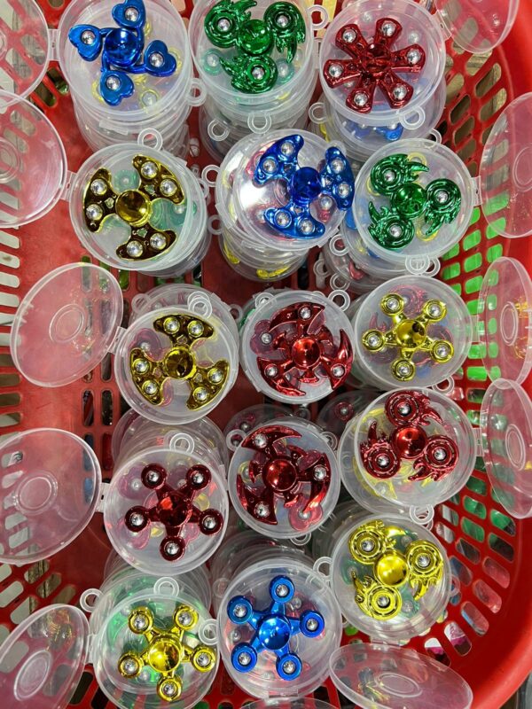 Multicolor Metal Fidget Spinner ? Small Pack of 1 (Random Designs & Colors) Experience endless fun and stress relief with our Multicolor Metal Fidget Spinner! Perfect for kids and adults alike, this compact spinner offers a mesmerizing spinning experience in a variety of random designs and vibrant colors.