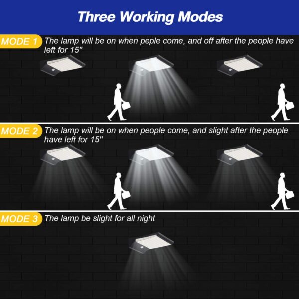 When people go through the light sensing area, the light will be strong. And the light will turn to dim after people leave the induction area.