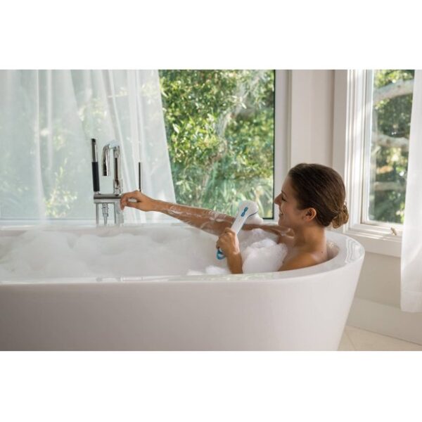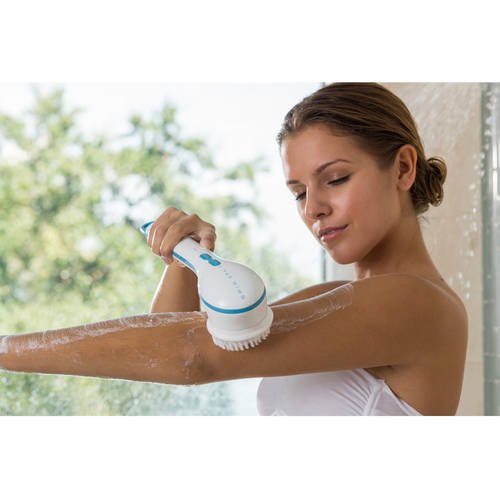 Pamper yourself with the As Seen on TV Spin Spa Body Brush. It helps to give you healthier and younger looking skin. This Spin Spa shower brush instantly soothes tired and sore muscles, helping you to relax. Use it to get clean while getting a healthy glow every day. This Spin Spa spinning brush works with your favorite soap or body wash for your convenience. The long handle makes reaching your back and lower legs easier. All of the heads are interchangeable to enjoy a different experience with each one. There’s a microderm, massage, pumice and two others.