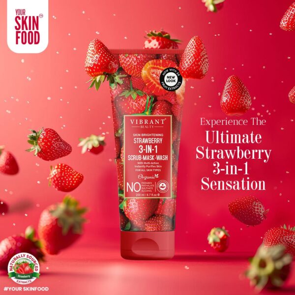 Vibrant Beauty Strawberry 3 In 1 Scrub-Mask-Wash Face Wash Deep Pore Cleansing Facial For Radiant Skin (200ml)