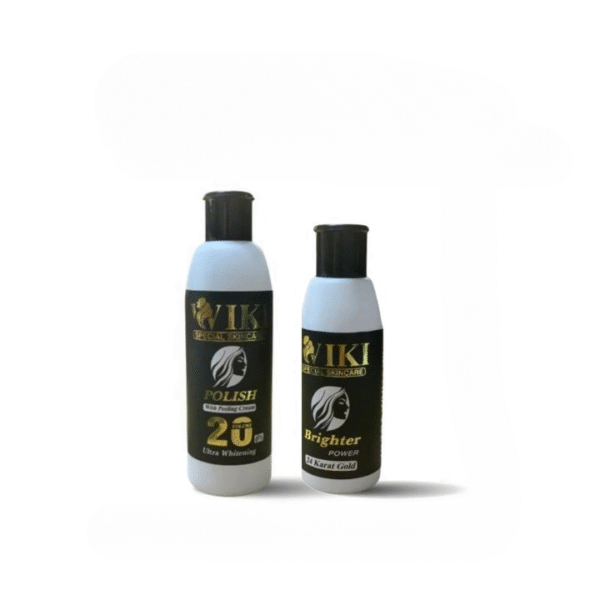 VIKI Special Skincare Brighter Power 24K Gold & Polish Peeling Cream ? Ultra Whitening Set (Black)Achieve radiant, glowing skin with the VIKI Special Skincare Brighter Power & Polish Cream Set in sleek black packaging. This combo includes a 24K Gold infused brightening cream that helps improve skin tone, reduce dullness, and restore natural glow, along with a professional polish peeling cream (20 Volume) designed to exfoliate, whiten, and smooth your skin. Suitable for all skin types, this set is perfect for achieving salon-like results at home.Key Features:Brighter Power Cream with 24K Gold infusion for natural glowPolish with Peeling Cream (20 Volume) for deep exfoliation & whiteningReduces dullness, spots, and uneven skin toneSmoothens and polishes skin for a fresh, radiant lookBlack packaging for premium presentationSuitable for all skin typesEasy-to-use formula for home skincare routines
