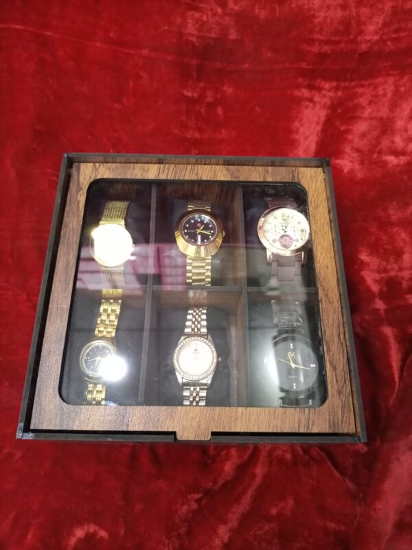 Keep your watches safe and organized with this stylish wooden watch organizer.