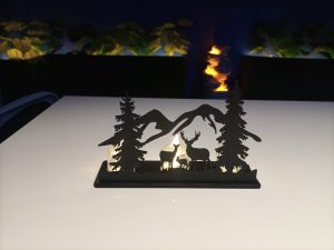 5-Piece Wooden Wall Frame ? Deer in Forest Sunset Design | 16x40 Inch with Sticky Tiles