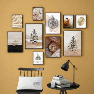 Wooden Islamic Calligraphy Wall Art Frame Set of 10 | Premium Multi-Size Wooden Frames for Elegant Home, Office, Mosque & Prayer Room Decoratio