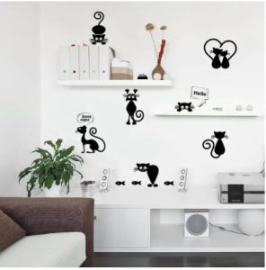 8 Pcs Cartoon Black Kitty Switch Sticker Home Decor Living Room