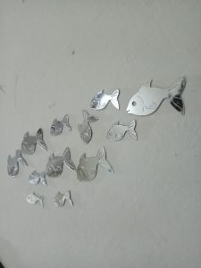 30 Pcs Acrylic Fishes Mirror Wall Art Decor Fishes Mirror Stickers Decals for Kids Girls Bedroom Bathroom Playroom silver