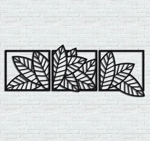 3D wooden 3 Piece Long Leaf Panels | Wall Hanging wooden Art | Wall art I Wall art for room decoration